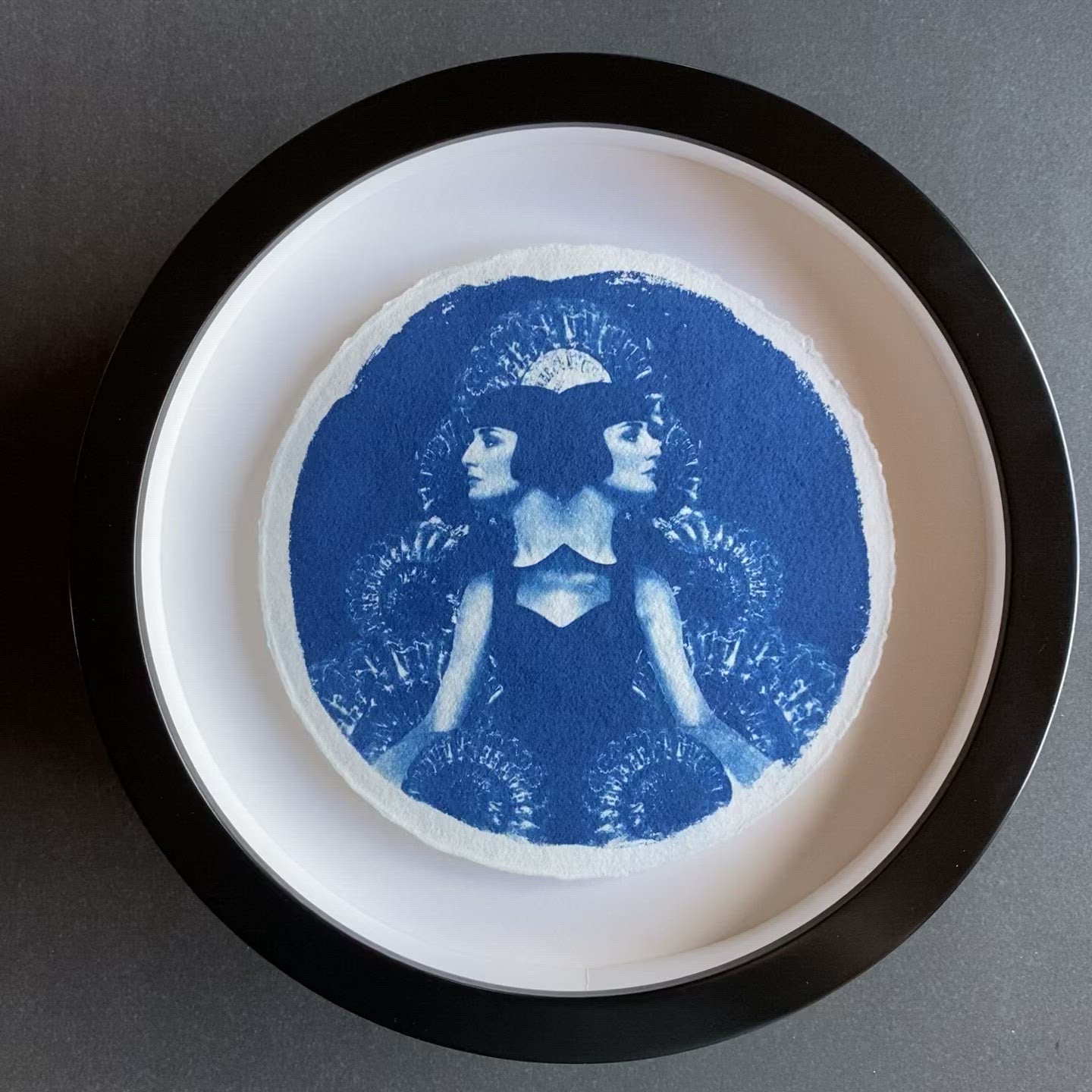 All framed cyanotypes are float mounted. The artwork floats above a snow-white mount board, showcasing the paper texture and deckled edging.Paper